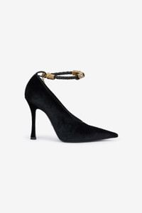 Roberto Cavalli Velvet Stiletto Heels With Jewel Anklet