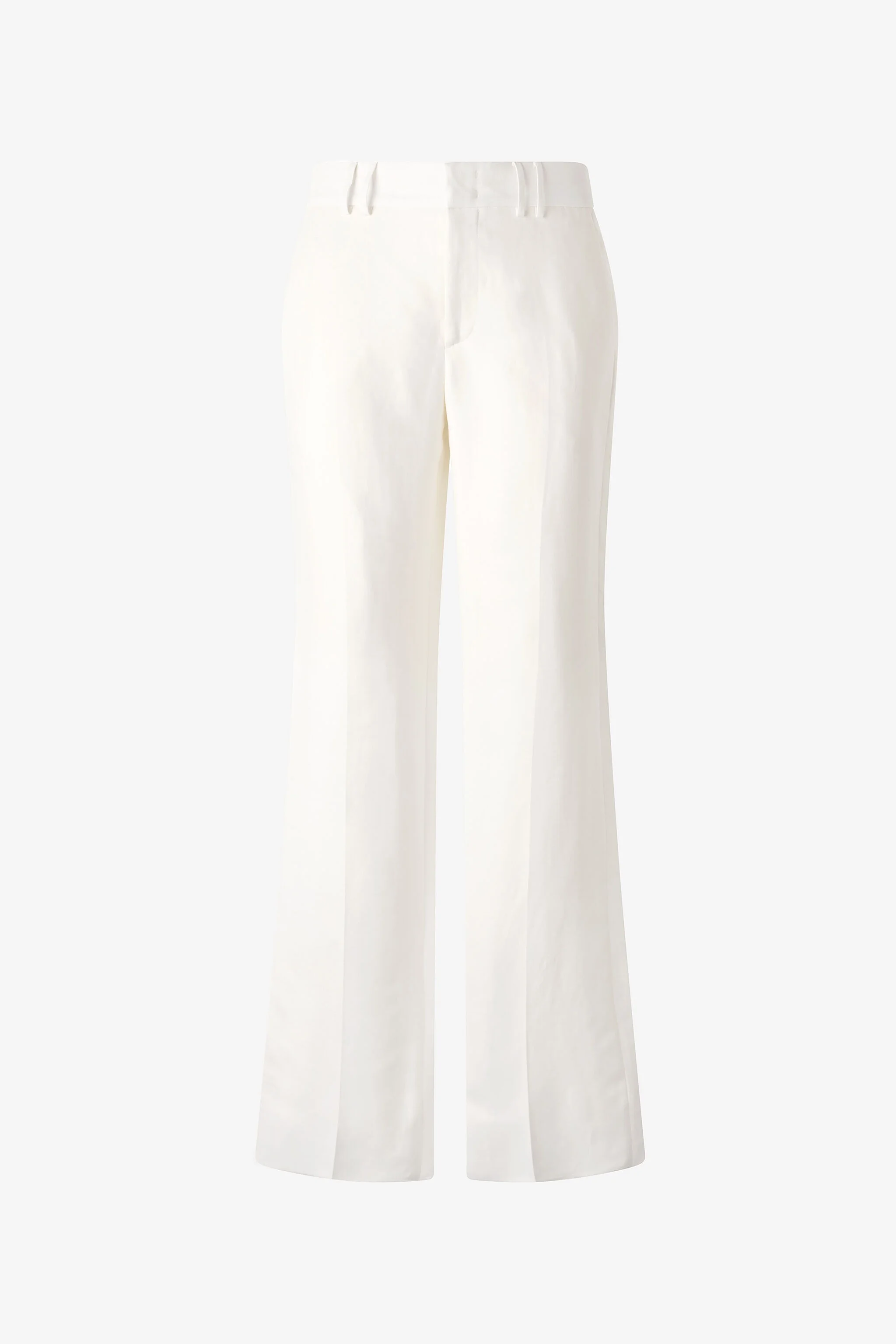 ID: URT226-HS003-00052 Embrace effortless elegance with these men's pants from Roberto Cavalli, which are ready to elevate your casual looks as well as the most formal ones. This flared-leg style features two practical slanted pockets and two refined welt pockets on the back embellished with a branded button on which the shape of the iconic snake stands out, an authentic expression of the brand's DNA. Details - Flared pants - Lined - Belt loops - Slanted pockets - Back double-welt pockets and branded button - Front and back pressed pleat - Concealed front fastening Care & maintenance External fabric:76% Viscose / Rayon, 24% Flax / Lining:100% Viscose / Rayon