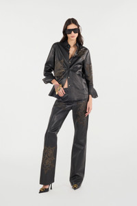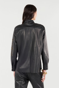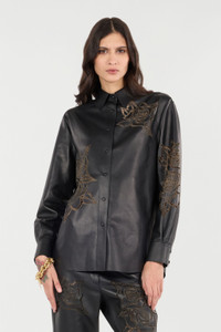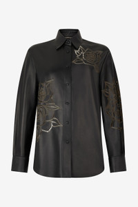 Leather Shirt With Perforated Roses