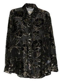floral-textured blouse Highlights - Black - Floral pattern - Front button fastening - Long sleeves - Classic collar Imported Composition Fabric 100% Washing instructions Read Manufacturer Guidelines