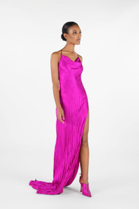 Crinkled Silk Long Dress