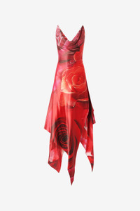 ID: UKT116-RYN48-02000 Express your romantic spirit with this pure silk dress by Roberto Cavalli featuring a refined all-over maxi rose print and a draped neckline, while the hem is made asymmetrical by the deep cuts, which give the design a touch of extra sensuality. Details - Pure silk dress - All-over maxi-rose print - Soft draped neckline - Sleeveless design - Asymmetrical hem with deep cuts Care & maintenance External fabric:100% Silk