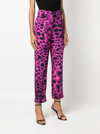 graphic-print straight trousers Roberto Cavalli enlivens classic straight-leg trousers with its knack for bold prints. This pair stands out in a bright pink hue and is adorned with a signature gold-tone charm. Made in Italy Composition Viscose 95%, Elastane 5% SIZE & FIT Model measurements Height 5 ft 10 in(1.78 m) Bust/Chest 33.07 in(84 cm) Hips 36.61 in(93 cm) Waist 24.8 in(63 cm) FittingInformation This piece fits true to size. We recommend you get your regular size Cut for a slim fit Made with a mid-weight non-stretch fabric
