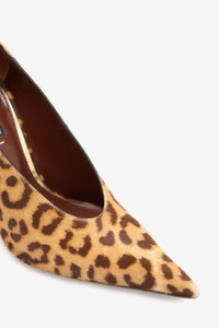 ID: VKS120-PZA92-00504 The roaring Leopard Skin print, the unmistakable signature of Roberto Cavalli, imbues these pointed pumps with a hairy effect upper with a feline spirit. The style is complete with a golden metal detail on the back in the shape of the unmistakable Mirror Snake Monogram, while the towering spool heel slims the figure and adds even more boldness to the design. Details - Pointed-toe pumps - Hairy-effect upper with Leopard Skin print - Metallic Mirror Snake Monogram on the back - High spool heel - Roberto Cavalli label on the insoles - Made in Italy