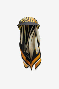 ID: TALR02-IR019-09392 Roberto Cavalli's bold creativity finds maximum expression in this innovative cap with visor, perfect for wearing on a journey of discovery through the desert. The model consists entirely of a soft scarf to be tied at the back and is embellished with the iconic Ray of Gold pattern, an unmistakable reminder of the power of the sun. The Roberto Cavalli signature, which stands out on the accessory in a contrasting hue, is another tribute to the Maison's DNA. Details - Cap with hard visor - All-over Ray of Gold print - Scarf construction - Contrasting Roberto Cavalli signature - Measures One size Care & maintenance External fabric:100% Silk