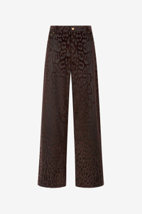 ID: VKT207-VL076-03513 Turn heads with these glamorous feline pants made of soft stretch cotton velvet. The garment, featuring a five-pocket design and a wide leg, is animated by a refined ribbed workmanship that reveals the iconic Jaguar Skin pattern over the entire surface. Completing the high-waisted design are the branded metal rivets at the pockets, a logo patch on the back, and a gold-tone branded button, expressions of Roberto Cavalli’s identity. Details - Stretch cotton velvet pants - Rib knit - All-over Jaguar Skin pattern - Five-pocket design - Branded tag on back - Belt loops - Golden branded button