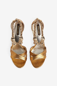 ID: FWS199-PA013-09201 This season, Swarovski crystals enhance the sensuality and femininity core to Roberto Cavalli’s footwear collection. These gold tone platform python sandals are high-octane glamour at its best, and feature an intricately embellished panther and chain ankle strap. Details - Crystal-Embellished Panther Sandals - 120mm heel - Black and dark yellow Swarovski crystals - High stiletto heel - Back zip closure - Domestic shipping only - Made in Italy Care & maintenance Leather - Fur:Homalopsis Buccata / Lining:100% Capra hircus linneaus