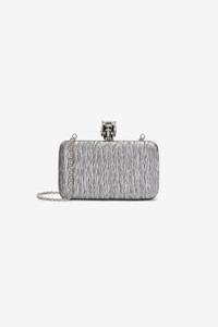 ID: UKB014-TBP02-D2784 This rectangular-shaped clutch, entirely covered in a cotton fabric with a refined draped effect and a shiny metallic look, is ready to elevate your looks with a precious touch. The accessory is decorated with a crystal-studded tiger fastening and contrasting lining inside: an unequivocal tribute to the animal universe, which has always been a source of inspiration for the Maison Roberto Cavalli. A thin chain shoulder strap that can be removed with the clasps gives the style a functional touch without sacrificing elegance. Details - Fabric clutch with a draped effect - Removable silver-colored chain shoulder strap - Interlocking tiger jewel fastening - Printed lining - Inside label with Roberto Cavalli logo - Made in Italy Care & maintenance External fabric:100% Cotton / Lining:100% Bos Taurus
