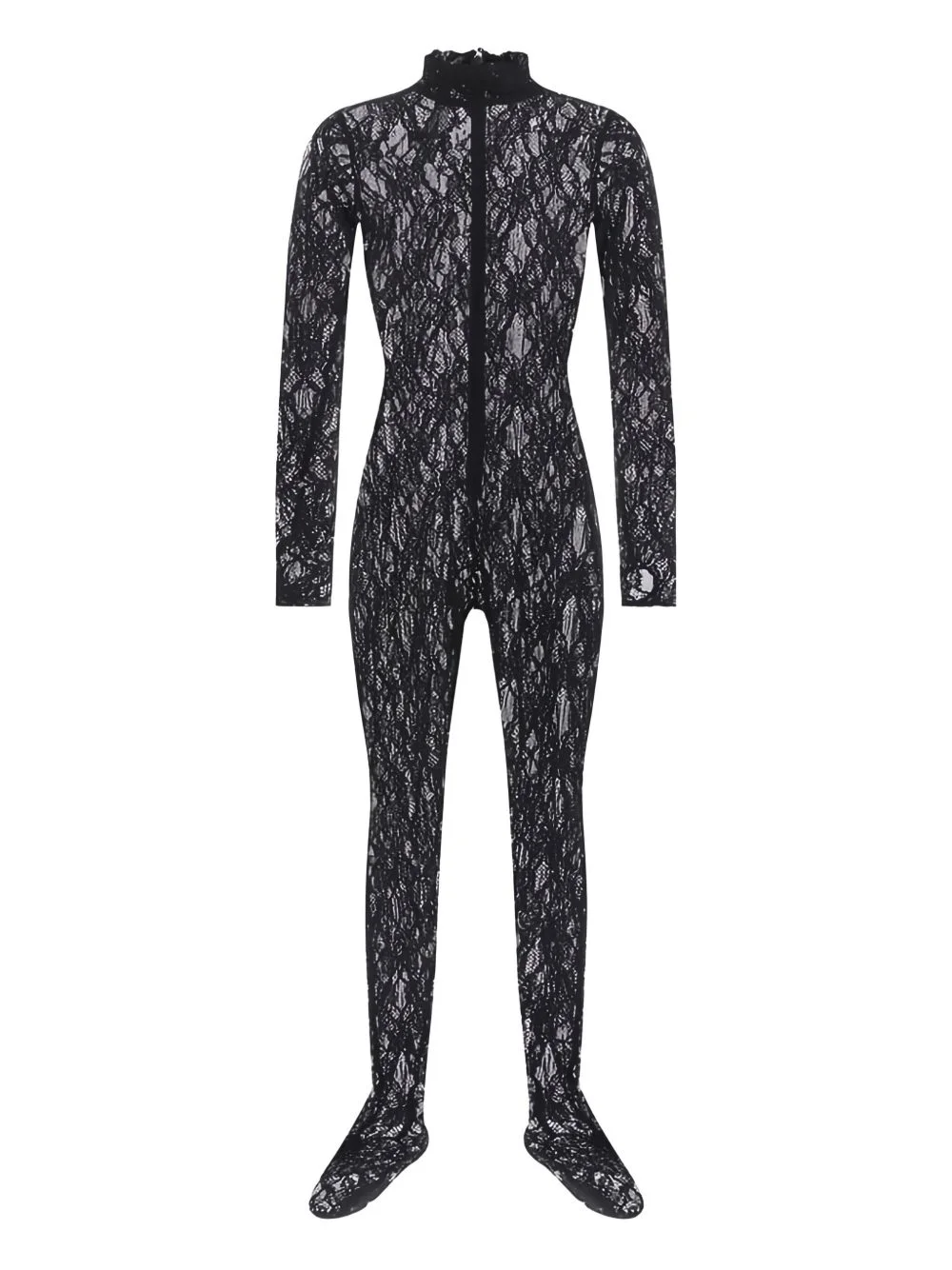 lace high-neck jumpsuit Highlights - Black - Lace fabric - High neck - Long sleeves - Full length - Zip fastening Made in Italy Composition Cotton 59%, Polyamide 33%, Elastane 8% Washing instructions Read Manufacturer Guidelines