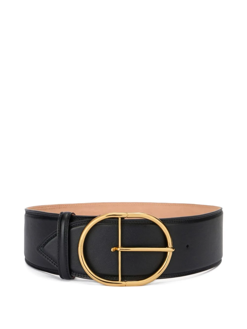 leather belt Highlights - Black - Shaped design - Gold-tone hardware - Oval buckle - Keeper loop - Adjustable fit Imported Composition Leather 100%