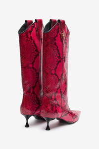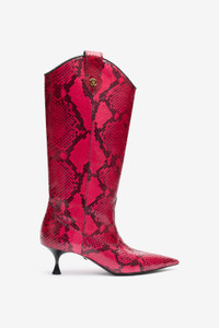 ID: UKS025-PZP02-D1007 The construction in leather with python scale-effect print is Roberto Cavalli's unmistakable signature on these Texan-inspired knee-high boots with a narrow toe silhouette. The iconic Mirror Snake Monogram, which decorates the bands on the top of the leg with a golden touch, and the RC Monogram on the sole are a further reference to the Maison's distinctive codes. Details - Leather knee-high boots with python-effect print - Mirror Snake Monogram on the bands at the top of the leg - Contrasting leather sole with metallic RC Monogram and Roberto Cavalli logo - Leather-lined interior - Low spool heel Care & maintenance Lining:100% Bos Taurus / Outer sole:100% Bos Taurus / Upper:100% Bos Taurus