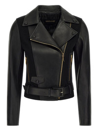 leather jacket Highlights - Black - Off-centre front zip fastening - Long sleeves Made In Italy Composition Outer: Sheepskin 100%, Viscose 75%, Polybutylene Terephthalate (PBT) 21%, Elastane 4% Lining: Viscose 100% Washing instructions Do Not Wash/Do Not Dry Clean