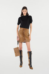 Leather Mini Skirt with Leopard Skin Print