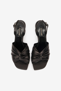 ID: UKS006-PN003-D0667 These slingback sandals from Roberto Cavalli feature a braided detail on the front, created by the combination of two inserts in shiny glossy leather. The style balances the vaguely retro feel of the spool heel with a square toe with a decidedly contemporary cut and pays tribute to the brand's distinctive style through the signature Mirror Snake Monogram under the sole and on the buckle of the strap that bares the heel. Details - Glossy-effect leather sandals - Braided detail on the front - Square toe design - Mirror Snake Monogram on the strap buckle - RC monogram under the sole - Roberto Cavalli label on the insoles - Spool heel - Leather sole - Leather-lined interior - Made in Italy Care & maintenance Lining:100% Capra hircus linneaus / Outer sole:100% Bos Taurus / Upper:100% Ovis Aries Aries