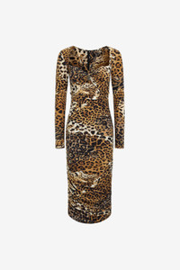 ID: SKT171-LNG34-00504 Details - Jaguar Skin print dress - Light Brown - Female - Made in Italy Care & maintenance External fabric:86% Polyamide, 14% Elastane / Lining:88% Polyamide, 12% Elastane