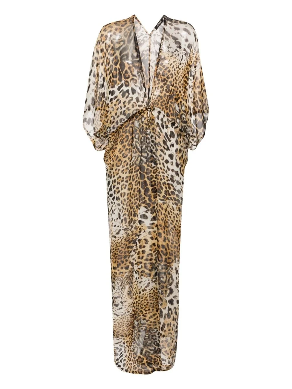 leopard-print silk beach dress Highlights - Beige/multicolour - Silk - Chiffon crepe - All-over leopard print - V-neck - V-back - Short draped sleeves - Drawstring waist - Empire line - Side slits - Straight hem - Full-length Made in Italy Composition Silk 100% Washing instructions Dry Clean Only