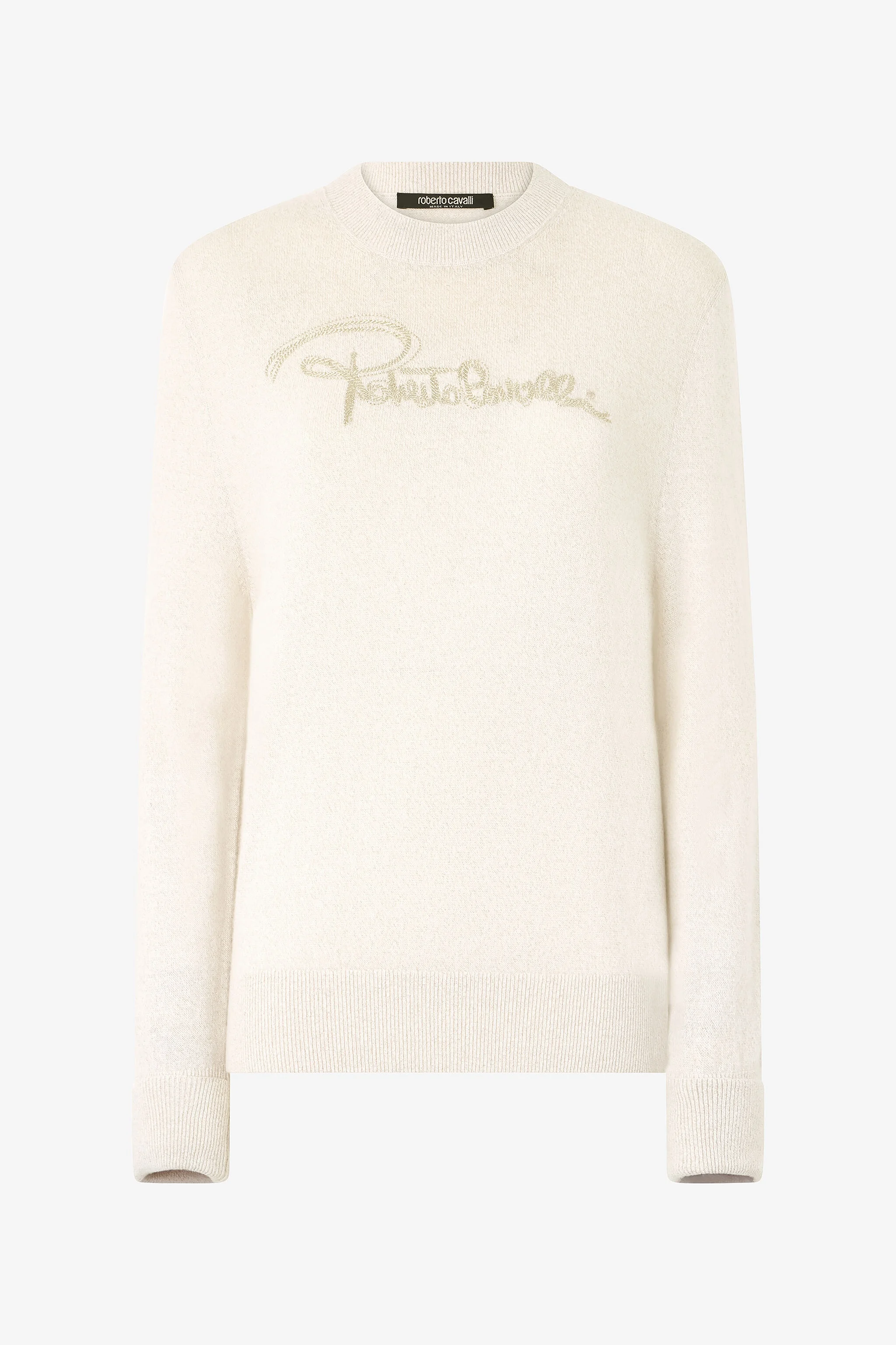 ID: UKM605-MI017-00052 Add a touch of class to your everyday wardrobe with this virgin wool and cashmere-blend sweater from Roberto Cavalli. The clean and understated lines of the piece, which are finished with a rib-knit on the neck, cuffs and hem, are embellished with the brand’s signature, embroidered in metallic thread on the front. Details - Virgin wool and cashmere-blend sweater - Crew neck - Roberto Cavalli signature embroidered on the front - Rib-knit neck, cuffs and hem - Roberto Cavalli label on the inside collar - Made in Italy Care & maintenance External fabric:37% Virgin wool, 27% Viscose / Rayon, 20% Polybutylene terephthalate, 9% Cashmere, 7% Metal - Metallic - Metallised