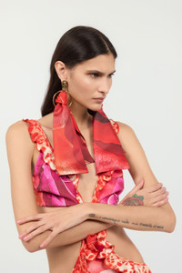 ID: TKG001-AM019-D0215 The Roberto Cavalli single silk pendant earring is an explosion of colors and patterns. A silk pendant, decorated with a vibrant floral and animal print, adds a touch of originality and style. A unique and versatile accessory, perfect for those who love to dare and stand out.</p Details The Roberto Cavalli single silk pendant earring is an explosion of colors and patterns. A silk pendant, decorated with a vibrant floral and animal print, adds a touch of originality and style. A unique and versatile accessory, perfect for those who love to dare and stand out. - Silk pendant - Stud fastening - Made in Italy Care & maintenance Composition:Silk, Brass