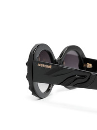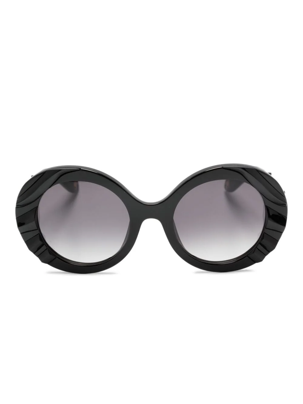 logo-print round-frame sunglasses Highlights - Black - Acetate - Round frame - Grey tinted lenses - Gradient lenses - Uv-protective lenses - Logo print at the arm - Straight arms - Curved tips - These glasses come with a protective case. Made in Italy Composition Acetate 100% SIZE & FIT Measurement Arm Length 5.51 in(14 cm) Bridge Width 0.82 in(2.1 cm) Lens Diameter 2.04 in(5.2 cm) Total Width 5.74 in(14.6 cm)