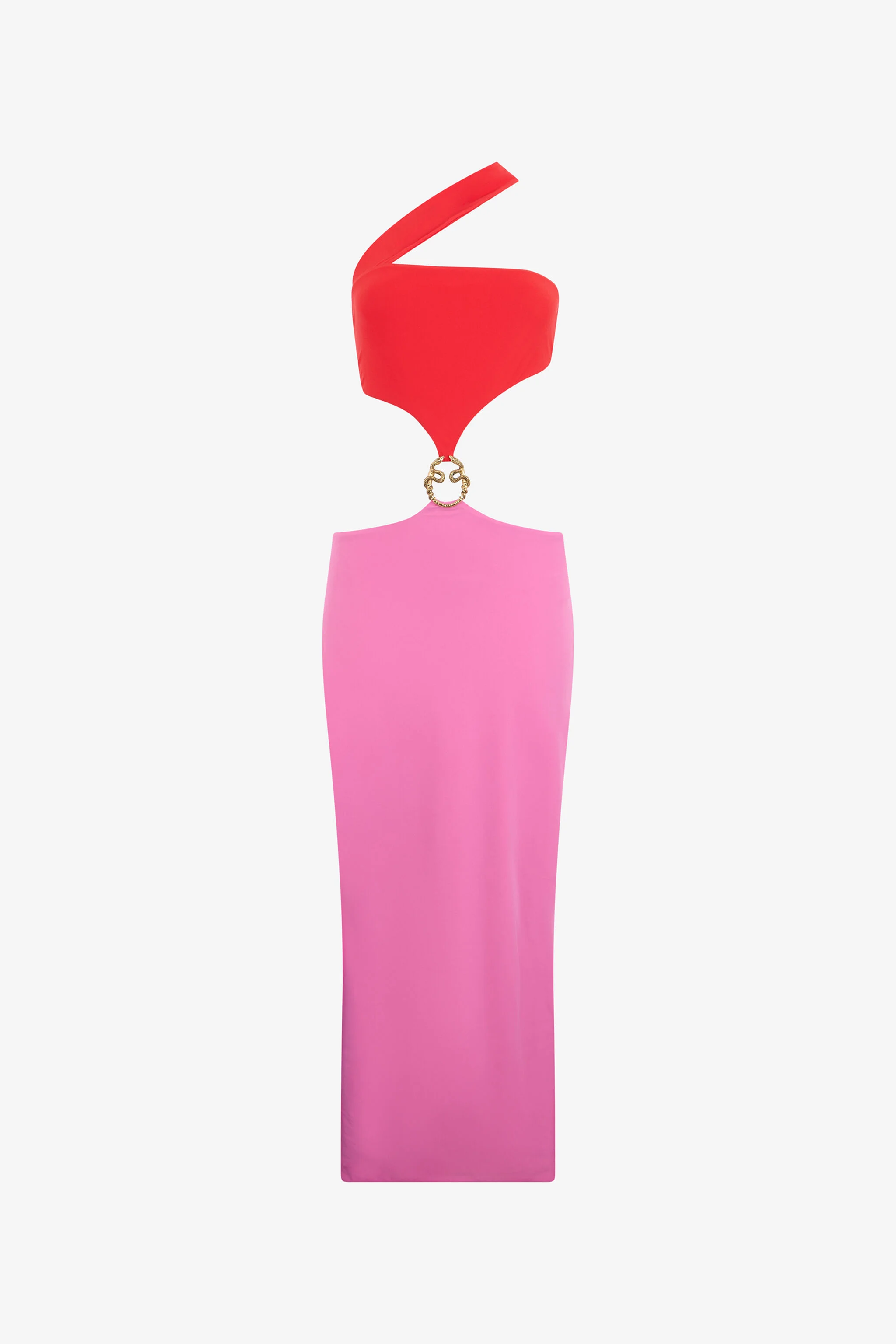 ID: WQW021-LL030-D0446 A dress that blends boldness with grace, featuring a striking two-tone design that draws the eye. Its long, figure-skimming silhouette is adorned with a central jewel detail, a symbol of timeless elegance. Details - Elegant, modern asymmetric design - Refined central jeweled detail - Silhouette that flatters the figure with grace - High-quality material and impeccable craftsmanship