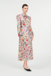 Long Silk Dress with Florentine Flowers Print