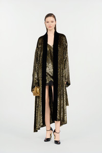 ID: WKT143-FT061-D0007 Embrace untamed glamour with this slip dress, illuminated by the shimmering Macro Leopard print. The fluid silhouette, crafted from a luxurious silk blend, gracefully skims the body, while the deep V-neck and open back create a boldly seductive effect. Delicate floral lace trims the hem, adding a final touch of romanticism to a design destined to captivate. The model is 178 cm tall and wears size S / 40 IT. Details - Halter neck slip dress - All-over Macro Leopard print - Crafted from a precious silk blend with a luminous effect - Deep V-neckline and open back - Contrasting floral lace embroidery at the hem - Thin self-tie straps at the neck - Perfect for exclusive cocktail parties and evening events - Made in Italy