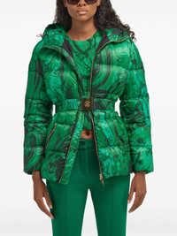 Malachite-print puffer jacket Highlights - Emerald green - Two-way zip fastening - Belted waist - Two side zip-fastening pockets - Classic collar Made in Italy Composition Outer: Polyester 100% Lining: Polyester 100%, Duck Down 100% Washing instructions Hand Wash