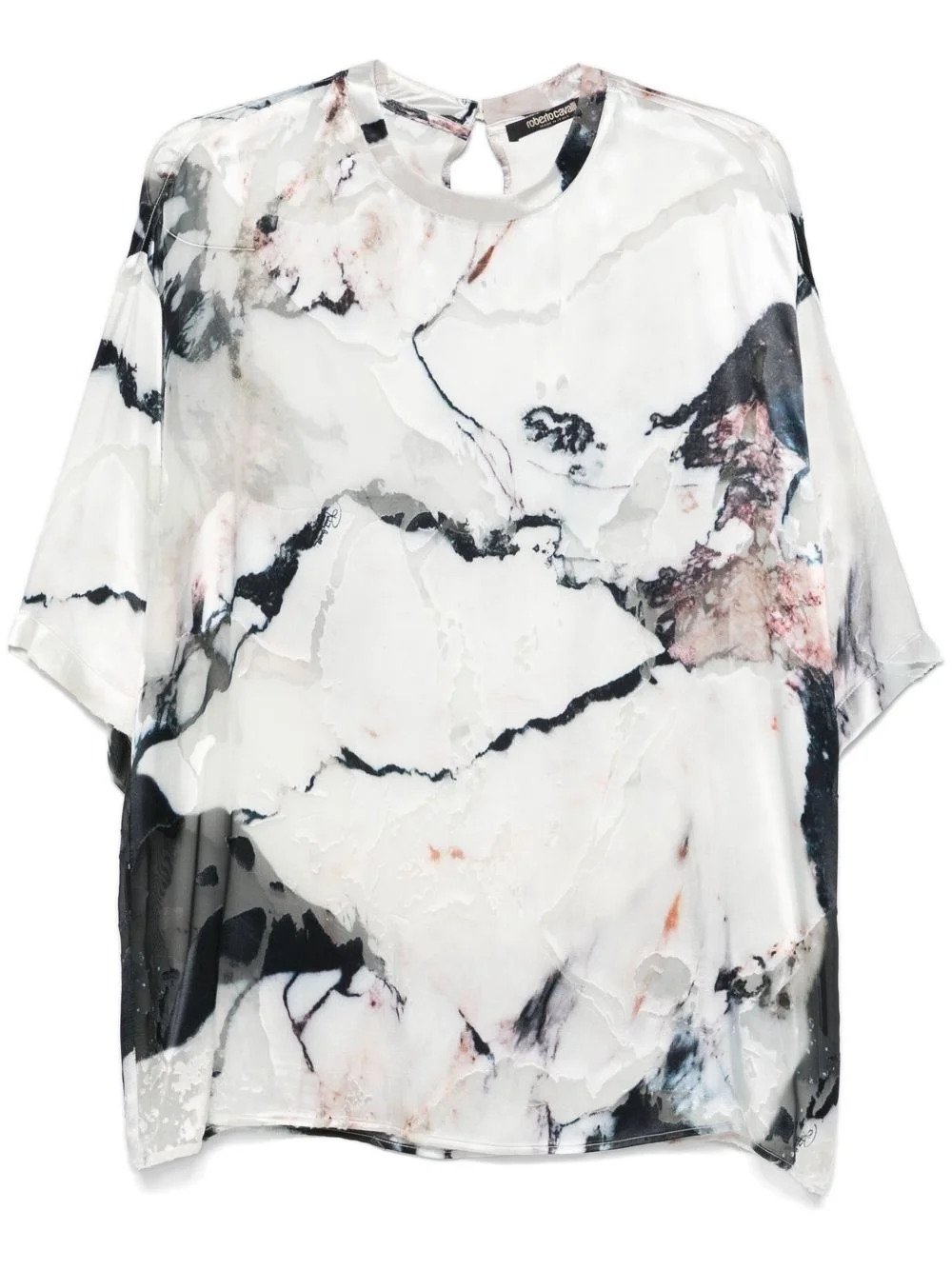 marble-print blouse Highlights - White/multicolour - Satin weave - Marble print - Rear button fastening - Round neck - Short sleeves - Keyhole detail to the rear - Curved hem Made in Italy Composition Viscose 75%, Silk 25% SIZE & FIT Model measurements Height 5 ft 9 in(1.75 m) Bust/Chest 34.64 in(88 cm) Hips 36.61 in(93 cm) Waist 26.37 in(67 cm) FittingInformation Designed to be unstructured, offering a loose fit throughout Made from a lightweight non-stretch fabric
