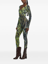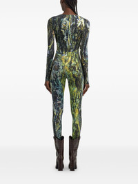 marble-print jumpsuit Highlights - Grass green - Rear zip fastening - Stirrup cuffs - Sweetheart neck - Long sleeves Imported Composition Polybutylene Terephthalate (PBT) 86%, Elastane 14%