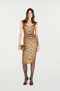 ID: VKT112-JMP73-00504 The wild elegance of Roberto Cavalli finds full expression in this dress with a fitted silhouette, featuring a sleeveless design with a wide boat neckline and a pencil skirt with a length below the knee. The model is also characterized by a touch of boldness that does not go unnoticed thanks to the roaring Jaguar Skin print that extends over the entire surface of the garment. Details - Dress with all-over Jaguar Skin print - Below-knee length - Sleeveless design - Wide boat neck - Slim fit - Front fastening with concealed zipper - Roberto Cavalli label on the interior