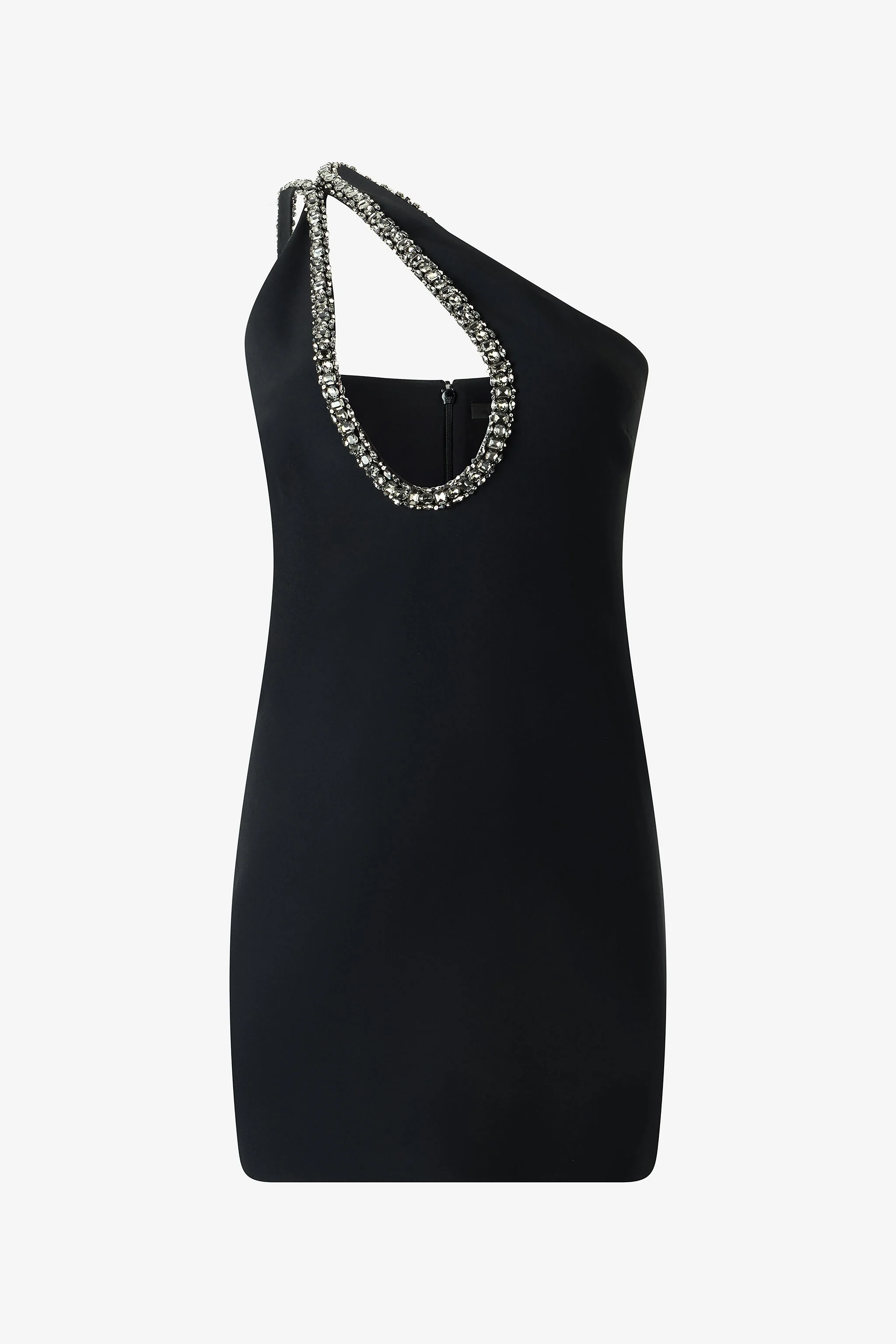 ID: VQR137-KU013-05051 Synonymous with glamorous and sensual femininity, this elegant mini dress by Roberto Cavalli stands out with its precious front cut-out that creates a bold keyhole neckline at the side. The slim-fitting model also features a single-shoulder construction with straps studded with rhinestones that continue on the back, creating an open-back design. Details - Mini dress with bejeweled neckline - Deep side cut-out studded with rhinestones - One-shoulder design with bare shoulders - Slim fit - Front fastening with concealed zipper