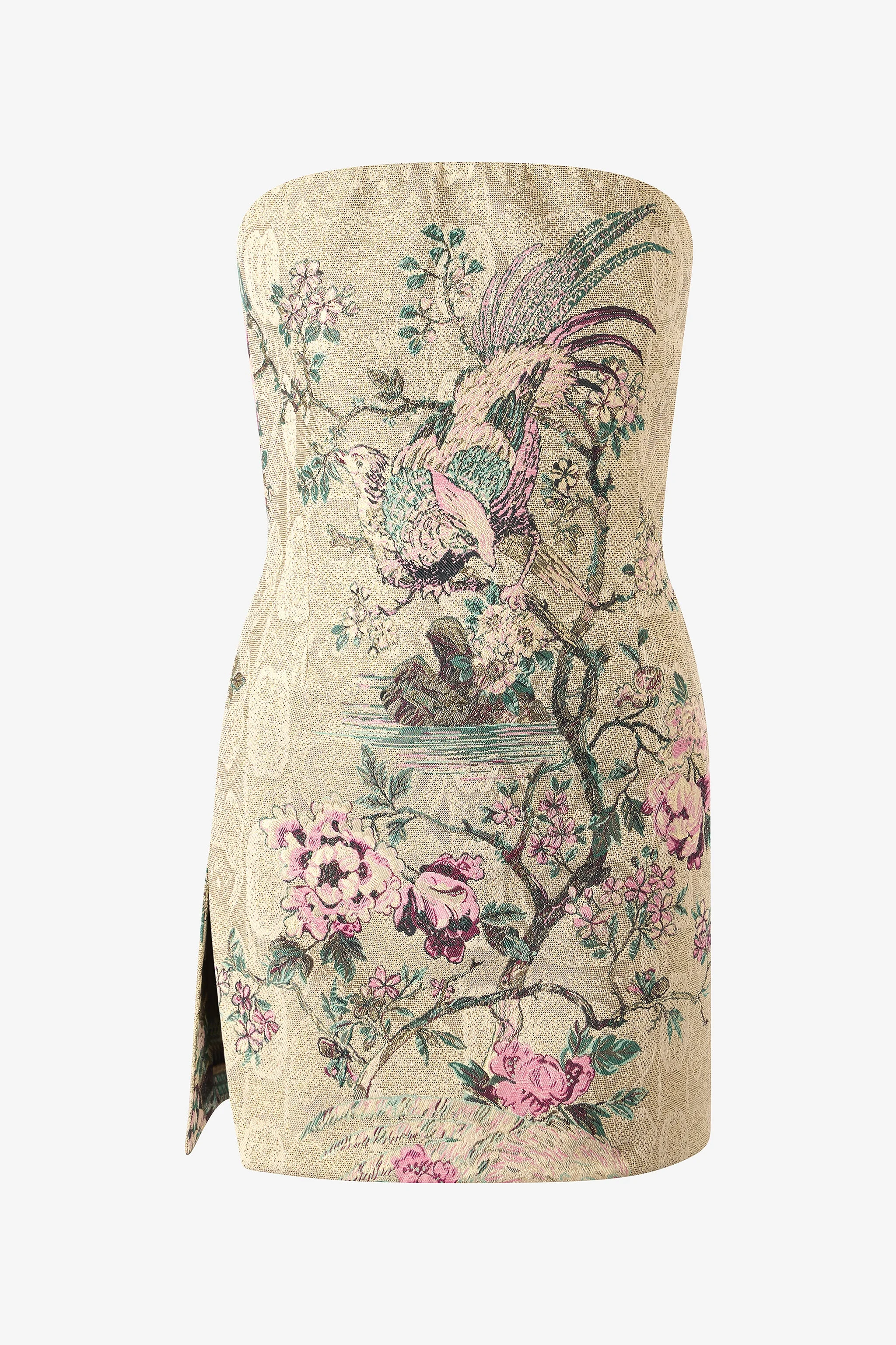 Mini Dress with Floral and Pheasant Motif