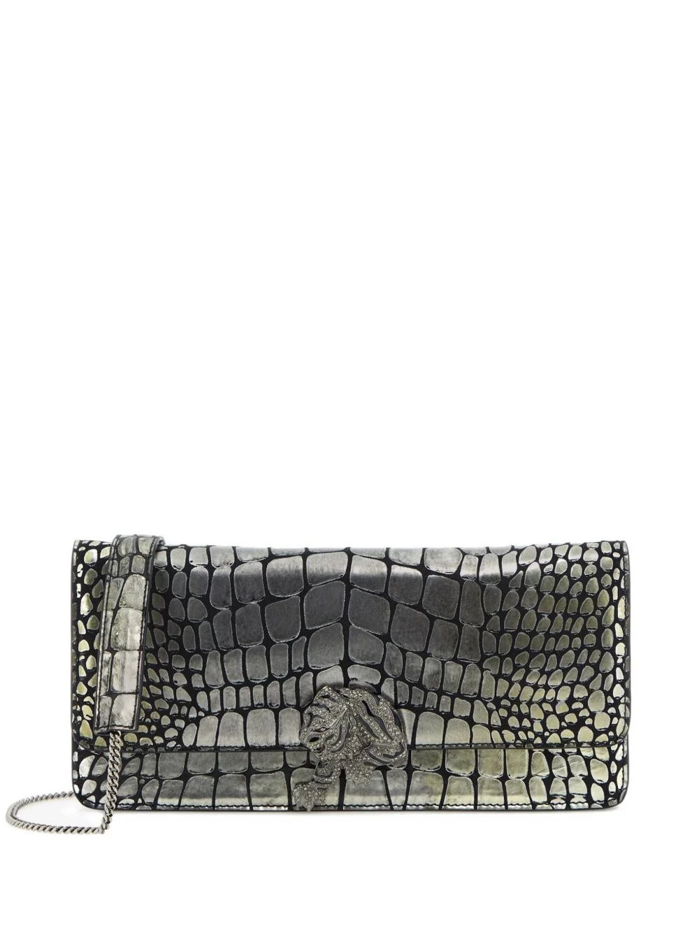 mini Roar crossbody bag Highlights - Silver-tone - Foldover top with magnetic fastening - Chain-link shoulder strap - Embossed crocodile effect - Tiger plaque detail Made in Italy Composition Lining: Polyurethane 56%, Polyester 44% Outer: Lamb Skin 100% SIZE & FIT Measurement DEPTH 2.75 in(7 cm) HEIGHT 5.11 in(13 cm) WIDTH 11.02 in(28 cm)