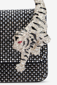ID: UKA004-PZE03-D0056 An indomitable feline spirit permeates this Roberto Cavalli cell phone holder where two crystal-studded tigers form the top handle, while a shower of shiny sequins covers the entire surface. A slim chain strap with leather shoulder strap adds a functional touch to the accessory, without sacrificing elegance. Details - Cell phone holder with square design - All-over sequins - Handle on top formed by bejeweled tigers - Magnetic flap fastening - Clasp-removable chain strap with leather shoulder pad - Lined interior Care & maintenance Leather - Fur:Bos Taurus / Lining:60% Polyester, 40% Polyurethane