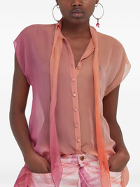 neck-tie blouse Highlights - Pink - Silk - Short sleeves - Button front - Asymmetrical hem Made in Italy Composition Silk 100% Washing instructions Read Manufacturer Guidelines