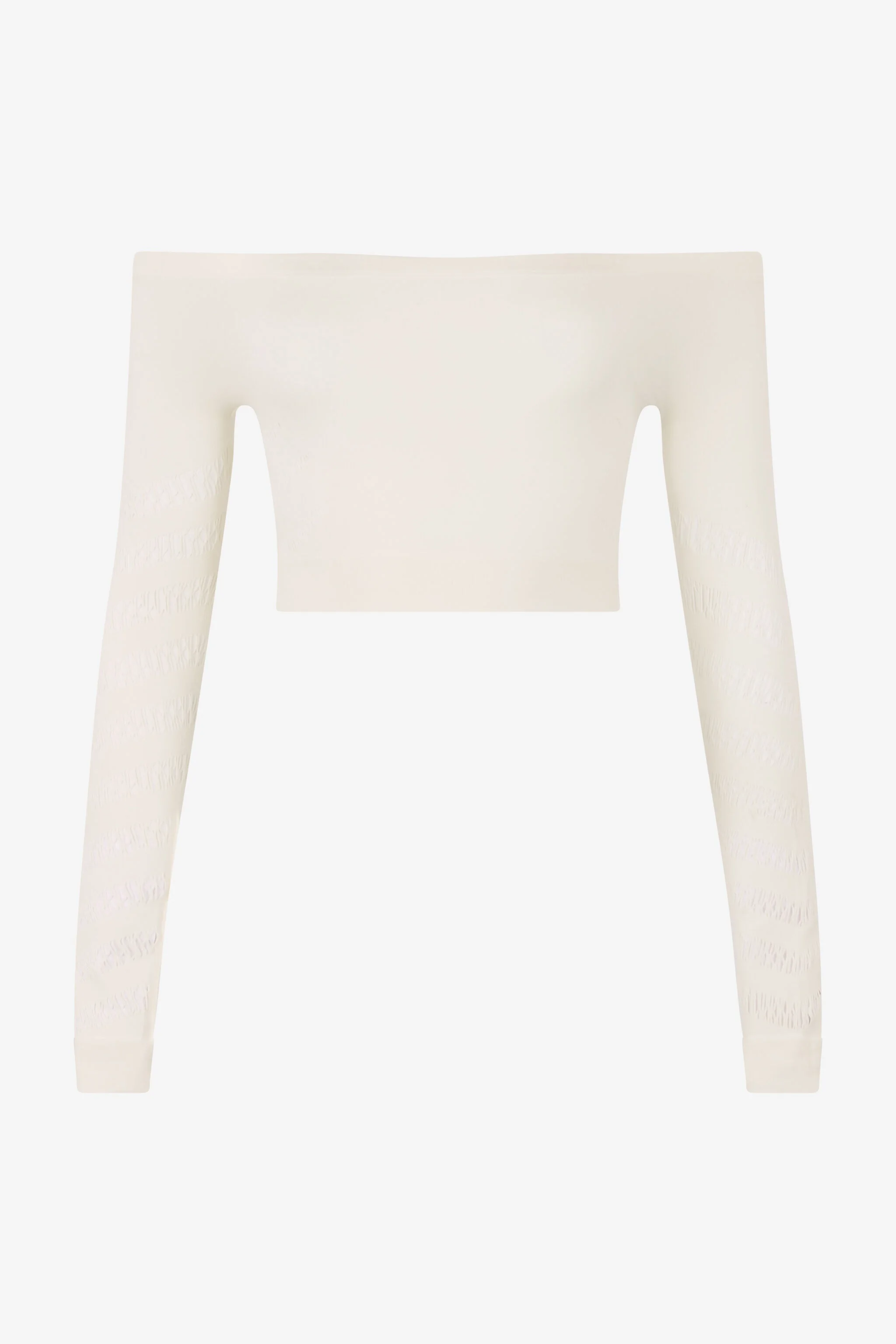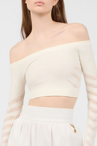 ID: UKT631-MA001-09088 This long-sleeved crop top has an off-shoulder design and features the all-over python-effect motif, an authentic tribute to Roberto Cavalli's distinctive style. Details - Crop top with long sleeves - All-over python-effect design - Off-the-shoulder neckline Care & maintenance External fabric:83% Polybutylene terephthalate, 17% Elastane