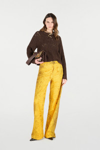 ID: VKJ207-DAP77-01003 An emblem of casual and contemporary luxury, these Roberto Cavalli stretch cotton denim pants feature a vibrant monochrome shade and a refined Broccato print that extends over the entire surface of the garment. The style, embellished with a golden, branded front button, is also defined by more casual details, such as the five-pocket design and belt loops. Perfect for creating casual-chic looks or for adding an explosion of style and personality to the most elegant outfits. Details - Stretch cotton denim pants with Broccato print - Regular fit - High-rise - Front fastening with gold-tone branded button - Five-pocket design - Belt loops