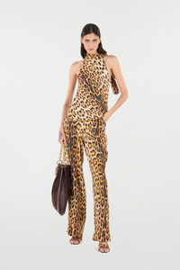 ID: VKT202-ORP73-00504 The world of animal patterns, an inexhaustible source of inspiration for Roberto Cavalli, finds full expression in these cargo pants with a roaring all-over Jaguar Skin print. A perfect blend of functionality and sophistication, this bold model features large side gusset pockets and a practical zip pocket at the leg hem, and is completed by convenient belt loops and the signature golden button with the iconic snake. Details - Cargo pants with all-over Jaguar Skin print - Two gusset pockets on the side - Golden branded button - Two back patch pockets - Small Roberto Cavalli signatures on the surface - Maxi belt loop down the leg - Hem pocket with zipper