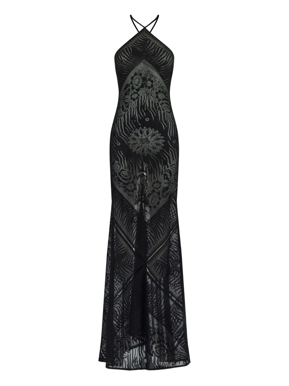 patterned-jacquard maxi dress Highlights - Black - Concealed rear zip fastening - Crossover shoulder straps - Logo plaque - Sleeveless Made In Italy Composition Viscose 86%, Polyester 14% Washing instructions Dry Clean Only