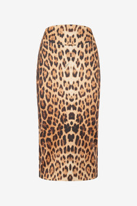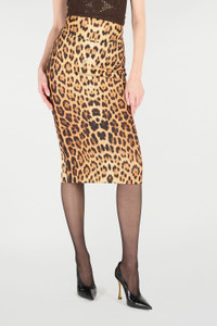ID: VKT301-JMP73-00504 The wild elegance once again leaves its mark on the Roberto Cavalli universe with this pencil skirt featuring a bold all-over Jaguar Skin print. The seductive high-waisted style with a pencil-shape design and below-the-knee length is destined to become an authentic staple in the women's wardrobe. Details - Skirt with all-over Jaguar Skin print - Fitted pencil-style cut with softer hem - Small Roberto Cavalli signatures on the surface - Below-knee length - High-rise with band
