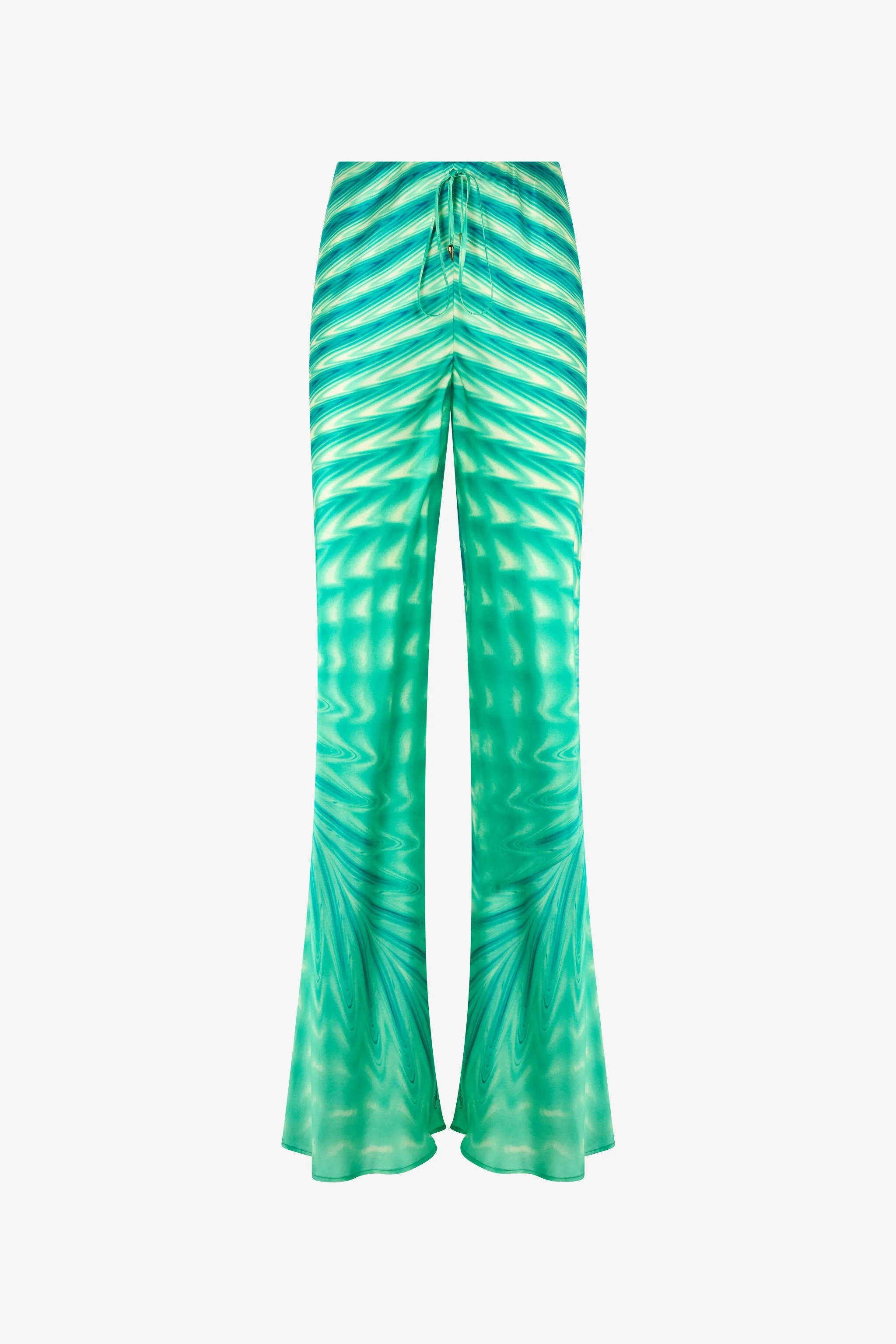 ID: UKT209-RYN47-04000 Let yourself be won over by the magnetic allure of the Optical Glass print, which extends over the entire surface of these fluid pure silk pants with a slightly flared hem from Roberto Cavalli. The style is complemented by an adjustable drawstring on the waist embellished by metal aglets in the shape of the iconic tiger Fang. Details - Pure silk pants - All-over Optical Glass print - Fluid design with slightly flared hems - Drawstring with metallic Fang-shaped aglets - High-rise Care & maintenance External fabric:100% Silk