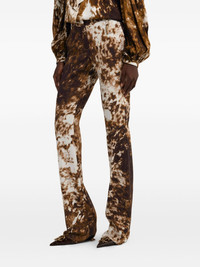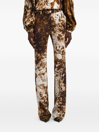 printed trousers Highlights - Chocolate brown - Hook and zip fly fastening - Two side slit pockets - Rear jetted pocket - Charm detail Made in Italy Composition Outer: Viscose 96%, Rayon 4% Lining: Viscose 52%, Cotton 48%