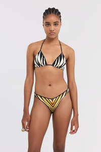 ID: TKW010-HVM33-01080 Details - Ray Of Gold Print Bikini Bottom - Gold - Female - Made in Italy Care & maintenance External fabric:72% Polybutylene terephthalate, 28% Elastane / Lining:84% Polyester, 16% Elastane