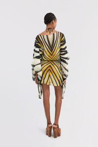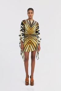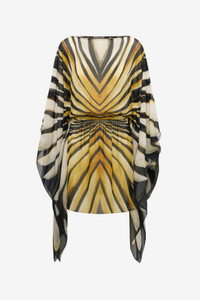 ID: TKT105-CTM33-01080 Capture the light with this silk kaftan dress featuring the striking Ray of Gold print. The fluid, lightweight silk drapes beautifully, while the vibrant print evokes bold, sun-drenched elegance. Wide sleeves and a relaxed silhouette offer both comfort and sophisticated style, perfect for those who wish to stand out. The model is 178 cm / 5' 10" tall and wears size S / 40 IT. Details - Kaftan dress featuring the Ray of Gold print - Crafted from pure, precious silk for a luxurious feel - Wide neckline and flowing batwing sleeves - Elasticated waistband to define the silhouette - Ideal for cocktail parties, resort wear, or summer evening events - Pair with high-heeled sandals and minimalist jewelry for a complete look - Made in Italy Care & maintenance External fabric:100% Silk