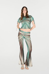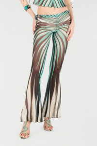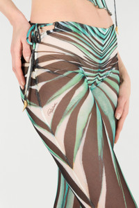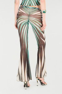 ID: VKT204-6HM33-04505 Capture the essence of the ocean with the Ray of Sea trousers. Crafted from semi-sheer stretch tulle, they feature a vibrant print evoking rays of light filtering through water. The flared silhouette creates dynamic movement, while drawstring details at the hips add a seductive touch. The model is 178 cm / 5'10" tall and wears size S / 40 IT. Details - Flared trousers in stretch tulle - All-over Ray of Sea print - Semi-sheer design - Adjustable drawstrings at the hips - Ruched detail on the back waist - Lettuce hem - Perfect for creating bold evening or resort looks - Pair with the matching Ray of Sea top for a striking total look - Made in Italy Care & maintenance External fabric:95% Polyester, 5% Elastane