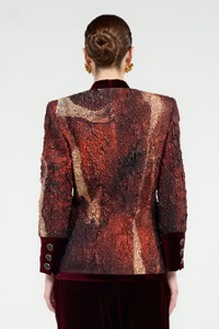 ID: VWR407-OZQ74-02006 An explosion of creative luxury, this jacket by Roberto Cavalli is made of pure silk with a crinkled effect and is decorated with a marble-effect print. The velvet trims, pockets and cuffs, together with engraved buttons and gold-tone trims, complete the garment with a sophisticated touch. Details - Crinkled-effect pure silk jacket - Marble print - Velvet trims, pockets and cuffs - Two pockets with button on the front - Front fastening with buttons Care & maintenance External fabric:100% Silk / Secondary fabric:82% Viscose / Rayon, 18% Silk / Lining:100% Viscose / Rayon