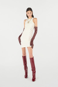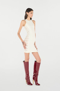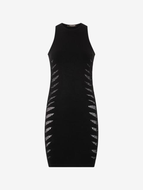 ID: UKT166-MA001-09088 A perfect combination of comfort and elegance, this Roberto Cavalli halterneck dress features a bold openwork Zebra motif that extends down the sides of the garment, an authentic tribute to the stylistic codes that have always distinguished the Maison's aesthetics. Details - Sleeveless halterneck dress - Openwork zebra design - Roberto Cavalli label on the inside collar - Made in Italy Care & maintenance External fabric:83% Polybutylene terephthalate, 17% Elastane