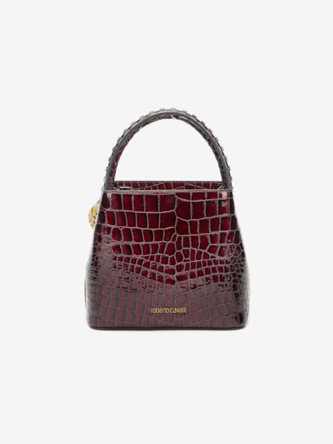 ID: UKB011-PZE01-D0568 The combination of the geometry of the slightly trapezoidal design and the elegance of the crocodile scale-effect embossing gives rise to this exclusive leather bag. The accessory, equipped with a convenient detachable matching shoulder strap, is enhanced with the Roberto Cavalli logo on the front and crystal-studded tiger heads decorating the ends of the top handle. Details - Crocodile scale-effect leather bag - Top handle with bejeweled tiger heads on tips - Slight trapezoidal design - Roberto Cavalli logo on the front - Top opening - Adjustable matching shoulder strap that can be removed with the clasps - Cotton-blend lining Care & maintenance Leather - Fur:Bos Taurus / Lining:97% Cotton, 3% Elastane