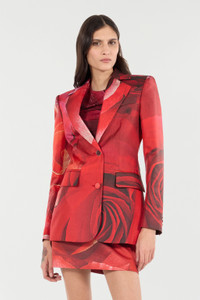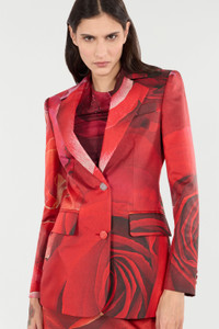 ID: UKT405-4QN48-02000 This silk blazer from Roberto Cavalli is ready to add a touch of romantic luxury to your closet thanks to the refined all-over maxi-rose print, while the hidden touch of extravagance is provided by the iconic solid-color Jaguar Skin print on the lining. There is no shortage of classic details, such as the breast pocket and the two front pockets with flap, as well as more tailored accents, like the rear vent. Details - Blazer with maxi-rose print - Classic lapels - One welt breast pocket - Two front pockets with flap - Single-breasted two-button fastening - Roberto Cavalli label on the inside collar - Lining with solid-color Jaguar Skin print - Long sleeves - Cuffs with buttons - Back vent Care & maintenance External fabric:100% Silk / Secondary fabric:50% Wool, 50% Viscose / Rayon / Lining:100% Viscose / Rayon