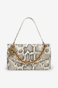 ID: VWB002-PZ407-05579 An authentic tribute to the reptile universe that has always fascinated the Maison, this rectangular bag with bellow side panels stands out for its all-over Python print and snake-scale embossed texture, as well as a front chain adorned with a charm featuring the iconic Mirror Snake Monogram. The model is complemented by a two-compartment interior, a hinged fastening and a matching shoulder strap. Details - Snake scale-effect bag - All-over Python print - Matching top strap - Gold chain with Mirror Snake charm - Flap fastening with magnetic button - Two internal compartments - Bellow interior design - Can be carried over the shoulder